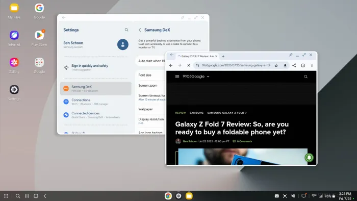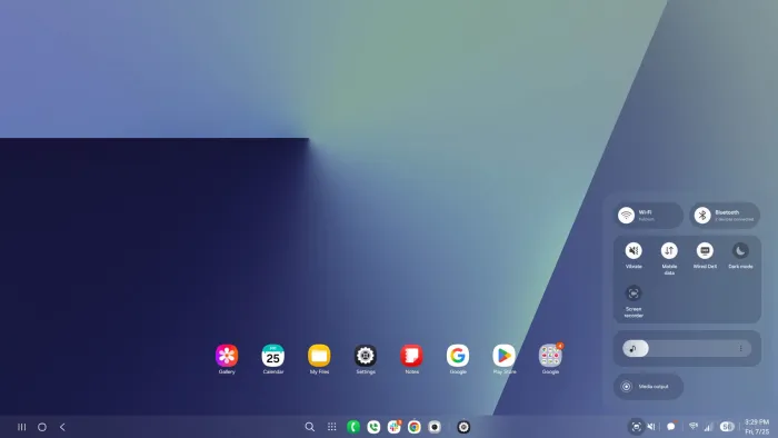 Iako je desktop mod Androida i dalje u beta fazi, Samsungova verzija deluje mnogo zrelije. Vizuelno, promene su blage: Quick Panel je osvežen, a deo sa podešavanjima više ne sadrži posebnu DeX sekciju, već je sada deo šireg menija pod nazivom „Povezani ekran”. Takođe, prečica za izlazak iz DeX režima više se ne nalazi u fioci aplikacija.