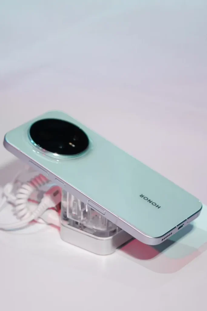 Magic 8 Pro zadržava sličan dizajn kao prethodni model, sa ravnim zadnjim panelom i pravim ivicama, dok svetloplava boja podseća na nijanse viđene prošle godine. Međutim, najveći vizuelni novitet nalazi se na bočnoj strani telefona, dodatni fizički taster koji nije deo standardnih kontrola za jačinu zvuka ili napajanje.